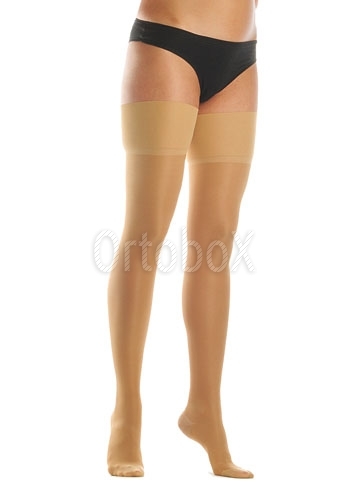 Создают умеренную компрессию от лодыжки до верхней трети бедра. Фиксируются с помощью пояса.