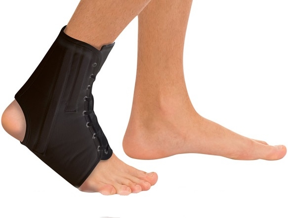 при помощи шнуровки, бандаж плотно облегает ногу, надежно фиксируя ее;