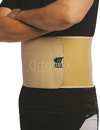 Части бандажа (прилегающая к спине и осуществляющая фиксацию) выполнены из эластичного полотна; часть, располагающаяся на животе — многослойная, плотная и нерастяжимая. Поверхность, обращенная к телу, изготовлена из х/б ткани.