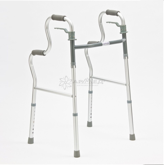 Конструкция двухуровневая позволяет пациенту подняться из положения сидя. Сначала пациент берется за нижние поручни, отталкивается, поднимается, опираясь на них, и встает, затем переносит руки уже на верхние поручни.